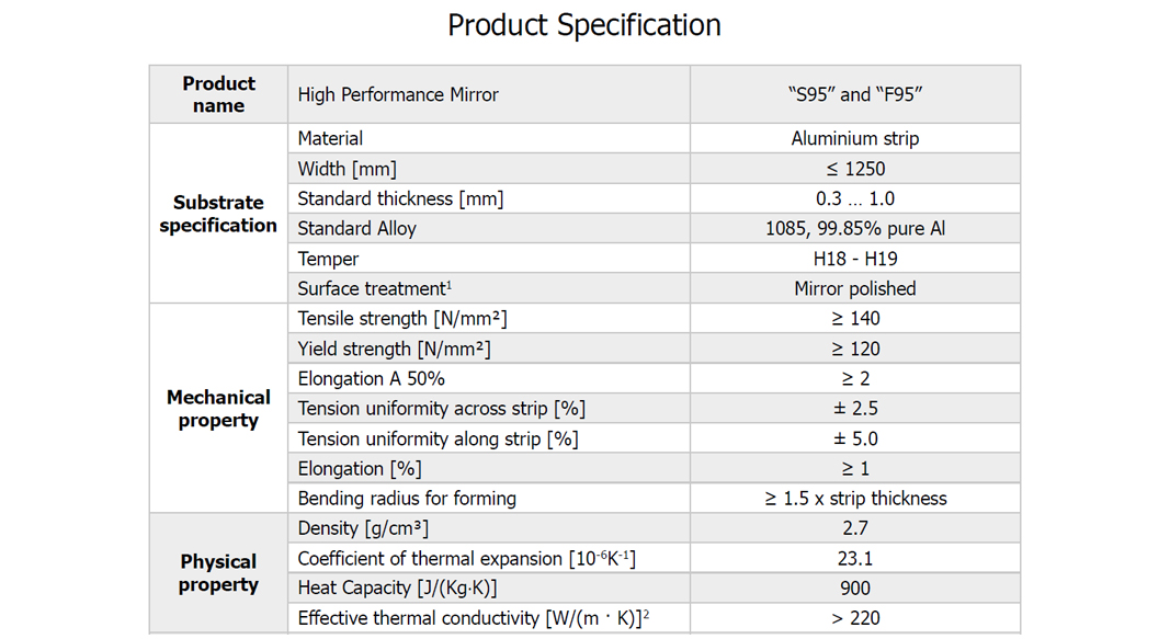 ---High performance AI mirror products S95 and F95 are specially designed to have an optimized reflection for the visible light(VIS)spectra with top values higher than 95%.
