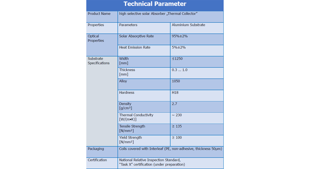 ---High selective solar absorber”Thermol Collector”is manufactured by first class PVD coating devices which achieve absorptive rate up to 95% and heat emission lower than 5%.(accessory of solar collector)